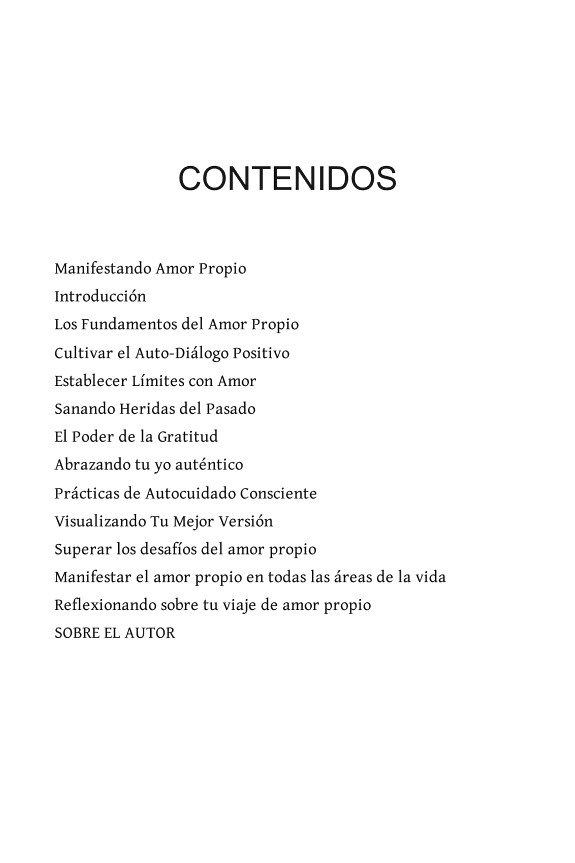 Manifestar el Amor Propio: Un Diario Diario para Afirmaciones y Crecimiento Personal es una guía transformadora diseñada para ayudarte a abrazar tu valor, cultivar el amor propio y manifestar una vida de alegría y plenitud. Ya sea que estés comenzando tu camino hacia el amor propio o buscando una conexión más profunda contigo mismo, este libro ofrece herramientas prácticas, afirmaciones poderosas y ejercicios reflexivos para fomentar tu desarrollo personal. En este libro explorarás: • Cómo superar el diálogo interno negativo y las creencias limitantes. • Prácticas diarias para fomentar la gratitud, la sanación emocional y la autocompasión. • Herramientas para establecer límites, abrazar tu yo auténtico y vivir conscientemente. • Visualizaciones para manifestar tu mejor versión y alcanzar tus metas. Lleno de sabiduría y orientación, cada capítulo te ayuda a construir resiliencia, afrontar desafíos y mantenerte alineado con tus verdaderos deseos. Manifestar el Amor Propio es más que un diario: es una herramienta transformadora para ayudarte a vivir con confianza, equilibrio y una profunda paz interior. Comienza hoy—porque mereces amor, alegría y éxito.
