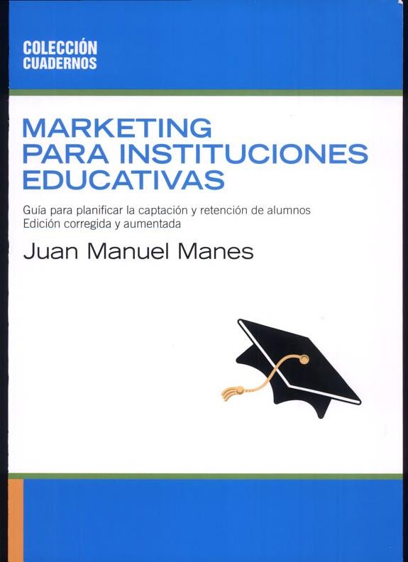 Marketing para Instituciones educativos ofrece de una manera sencilla, didactica y completa los recursos eticos para captar y retener alumnos; concebir, planificar, desarrollar y comunicar ideas con eficacia; indagar y satisfacer las expectativas que la sociedad deposita en la institucion educativa; crecer y modificarse junto con el medio en que opera y brindar un servicio cada vez mejor y mas apto para las necesidades de los estudiantes y sus familias. A traves de una guia acerca de las tecnicas de promocion, publicidad, telemarketing, mailing, relaciones publicas, proyeccion de imagen, busqueda de benefactores, investigacion de mercados, armado de bases de datos y nociones de organizacion y capacitacion internas, este libro esta orientado a facilitar la tarea de directivos y personal docente y no docente, de escuelas y colegios privados y publicos de todos los niveles. Juan Manuel Manes es licenciado en Comercializacion (Universidad Argentina de la Empresa), Update in Marketing Certificate (University of California, Berkeley), Strategic Management Certificate (University of Pennsylvania, Wharton School), miembro de la Asociacion Argentina de Marketing y de la American Marketing Association, profesor universitario de Marketing de Servicios, consultor especializado en marketing y management para instituciones educativas, y director de Market Masters Consultores.
