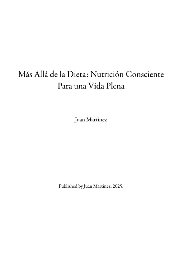 ¿Estás cansado de las dietas estrictas, la culpa tras cada comida y la constante batalla con tu cuerpo? Más Allá de la Dieta te invita a descubrir un enfoque revolucionario: la nutrición consciente. En estas páginas encontrarás herramientas prácticas y reflexiones profundas para reconectar con tus señales internas de hambre y saciedad, disfrutar de los alimentos sin restricciones y cultivar una relación sana y amorosa con la comida. Aprenderás a liberarte del ciclo de las dietas, a elegir lo que nutre tanto tu cuerpo como tu mente, y a crear hábitos sostenibles que te permitan vivir con energía, equilibrio y plenitud. Este libro no es un plan de alimentación ni una lista de prohibiciones. Es una guía para que descubras que comer bien no significa vivir limitado, sino disfrutar plenamente del acto de alimentarte y de la vida misma. Atrévete a dar el paso hacia una vida más consciente, libre y saludable. Tu bienestar empieza hoy.