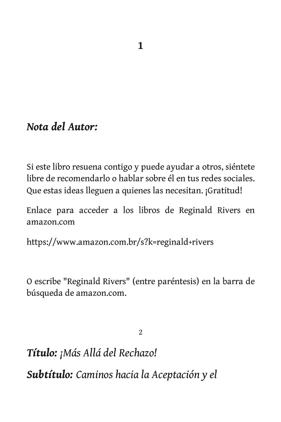 💥 ¡Descubre cómo superar el rechazo y recuperar tu autoestima! ¿Alguna vez te has sentido rechazado, invisible o no valorado? Este libro transformador es tu guía definitiva para entender, enfrentar y vencer el rechazo emocional, restaurar tu amor propio y construir relaciones más sanas y equilibradas. Escrito con claridad, empatía y fundamentos en principios psicológicos, este libro demuestra que no estás solo —y lo más importante: que hay un camino hacia la sanación interior. 📘 Dentro de este libro encontrarás: ✅ Estrategias prácticas basadas en técnicas cognitivas y conductuales ✅ Herramientas para desarrollar la autoaceptación y la resiliencia emocional ✅ Ejercicios de autoconocimiento para fortalecer tu identidad y propósito ✅ Explicaciones científicas sobre cómo el rechazo afecta tu mente—y cómo superarlo ✅ Reflexiones bíblicas y espirituales para fortalecer tu alma y tu fe 🔥 Ideal para quienes: • Luchan con traumas emocionales o baja autoestima • Tienen dificultades en relaciones amorosas, familiares o sociales • Quieren liberarse de la necesidad de aprobación y vivir con autenticidad • Buscan apoyo psicológico y espiritual para sanar el rechazo 📖 Mereces vivir libre de culpa, miedo y soledad. A medida que leas cada página, sentirás que alguien camina a tu lado—comprendiéndote, guiándote y fortaleciéndote. 🌟 Este no es solo un libro. Es un reencuentro con tu verdadero yo.