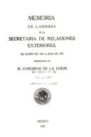 Memoria de la Secretaría de Relaciones Exteriores de … a … presentada a la H. Congreso de la Unión