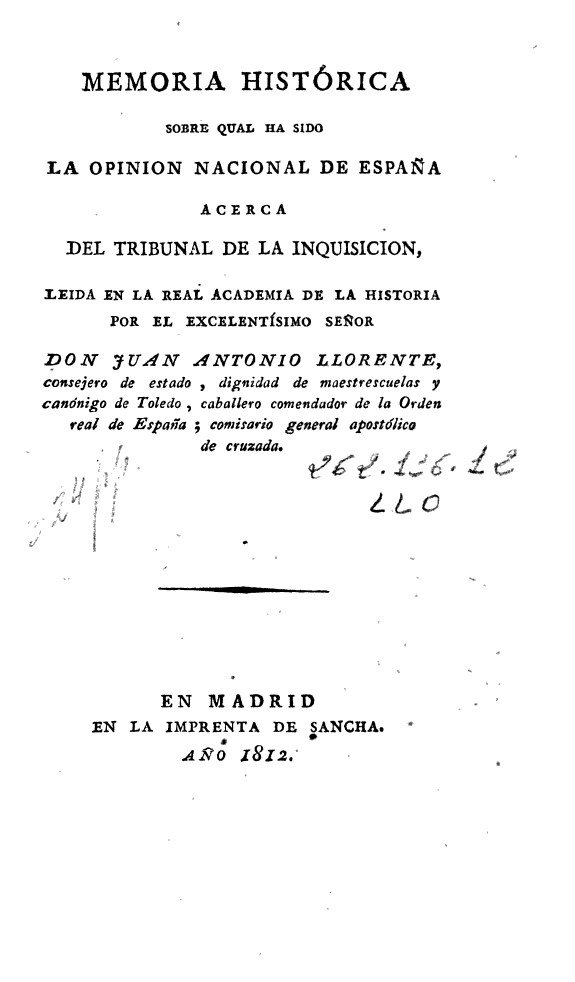 Home / Histórica / Memoria histórica sobre qual ha sido la opinión nacional de España acerca del Tribunal de la Inquisición
