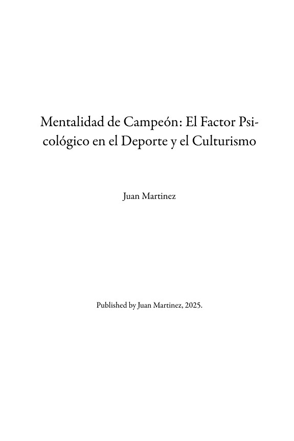 Mentalidad de Campeón: El Factor Psicológico en el Deporte y el Culturismo es una guía imprescindible para quienes buscan alcanzar su máximo potencial físico y mental. En el mundo del deporte y el culturismo, la fuerza y la resistencia no solo dependen del entrenamiento físico, sino también de la mentalidad con la que se enfrentan los desafíos. Este libro explora en profundidad la psicología del alto rendimiento, abordando temas clave como la disciplina, la motivación, la gestión del estrés, la visualización y la superación de límites. A través de estrategias probadas y consejos prácticos, aprenderás a desarrollar una mentalidad inquebrantable, a mantenerte enfocado en tus objetivos y a transformar los obstáculos en oportunidades de crecimiento. Tanto si eres un atleta experimentado como si estás iniciando tu camino en el mundo del culturismo y el deporte, este libro te proporcionará las herramientas necesarias para optimizar tu rendimiento y construir una mentalidad de campeón.