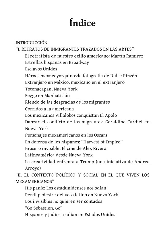 Este es un libro vivo, un libro que es un descubrimiento: que nos permite ver lo que Trump y su retórica quieren ocultar. El futuro es nuestro, escribe Fey Berman sobre los mexamericanos, y lo que prueba. En el 2050 habremos 80 millones. Y no nos vamos a ningún lado. Las historias de los mexamericanos -y sus caras, olores y rincones- aquí se pueden tocar. Mexamérica es un libro para entendernos mejor y para que los otros nos empiecen a entender. Jorge Ramos Mexamérica es un libro oportuno, lleno de información, de gran utilidad para entender la complejidad y diversidad de la presencia mexicana en Estados Unidos. Debiera ser de cabecera para todos los que se ocupan profesional, diplomática o académicamente de la deteriorada rlación entre México y Estados Unidos. Jorge Castañeda