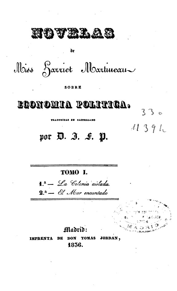 Home / Política / Novelas de Miss Harriet Martineau sobre Economía Política