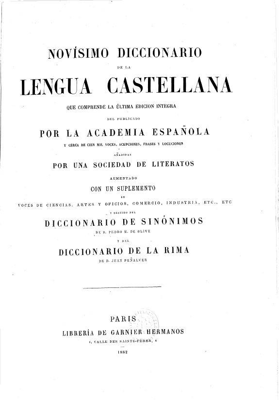 Novísimo diccionario de la lengua Castellana, que comprende la última edicion integra del publicado por la Academia española … aumentado con un supplemento … yseguido del