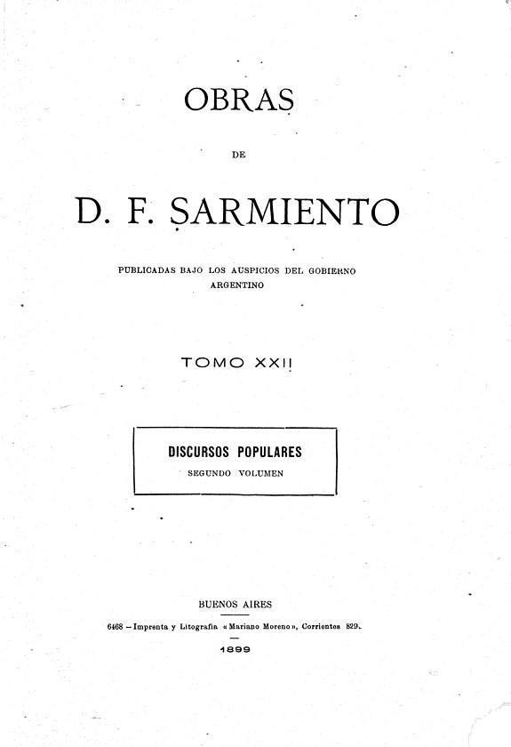 Obras de D.F. Sarmiento: Discursos populares. 1899