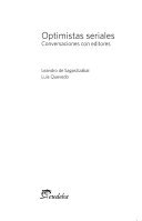 «¿Qué es editar?, ¿cómo y por qué se crea una editorial?, ¿cómo se construye un catálogo?, ¿cuál es la historia de la edición de libros en la Argentina?, ¿podrá sobrevivir el libro en papel al cambio tecnológico digital?, ¿y los editores?, ¿por qué una actividad con tan baja rentabilidad es tan atractiva? Las 21 entrevistas reunidas en «Optimistas seriales», realizadas en el programa Leer por Leer que conducen Leandro de Sagastizábal y Luis Quevedo desde 2011 en Radio UBA, recorren estos y muchos otros interrogantes. Las conversaciones … son un valioso aporte para el mundo de la edición en Argentina y América Latina y un punto de referencia ineludible para sus actores. Gonzalo Álvarez.» –Contratapa.