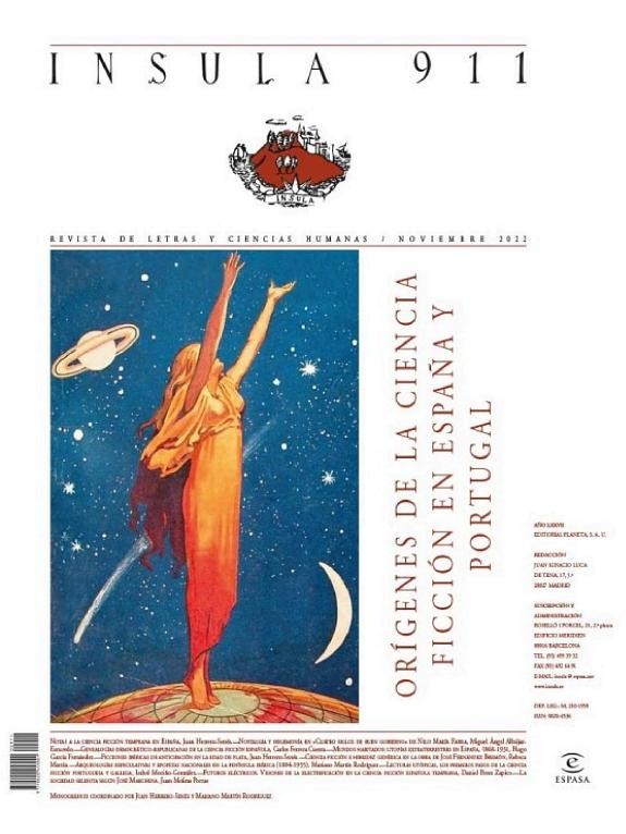 Orígenes de la ciencia ficción en España y Portugal (Ínsula n° 911, noviembre de 2022) Orígenes de la ciencia ficción en España y Portugal Juan HERRERO SENÉS / Notas a la ciencia ficción temprana en España Miguel Ángel ALBÚJAR-ESCUREDO / Nostalgia y hegemonía en «Cuatro siglos de buen gobierno» de Nilo María Fabra Carlos FERRERA CUESTA / Genealogías democrático-republicanas de la ciencia ficción española Hugo GARCÍA FERNÁNDEZ / Mundos habitados: utopías extraterrestres en España, 1868-1931 Juan HERRERO SENÉS / Ficciones ibéricas de anticipación en la Edad de Plata Rebeca MARTÍN / Ciencia ficción e hibridez genérica en la obra de José Fernández Bremón Mariano MARTÍN RODRÍGUEZ / Arqueologías especulativas y epopeyas nacionales en la península ibérica, 1884-1955 Isabel MOCIÑO-GONZÁLEZ / Lecturas utópicas, los primeros pasos de la ciencia ficción portuguesa y gallega Daniel PÉREZ ZAPICO / Futuros eléctricos. Visiones de la electrificación en la ciencia ficción española temprana Juan MOLINA PORRAS / La sociedad selenita según José Marchena