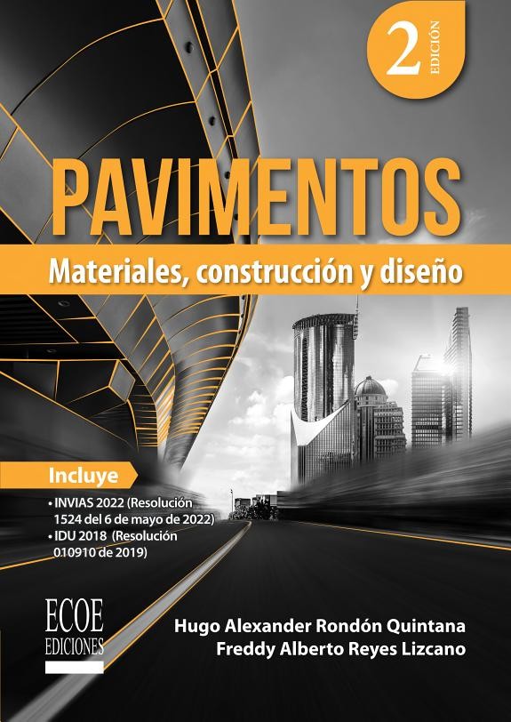 Con base en una amplia revisión bibliográfica se detallan los conceptos y fundamentos básicos de materiales para carreteras (asfálticos, granulares no tratados y estabilizados); se exponen los mecanismos de daño de pavimentos y las ecuaciones matemáticas más utilizadas para intentar predecir el comportamiento que experimentan estos materiales; se presentan las especificaciones técnicas y los ensayos que se deben ejecutar a la hora de evaluar los requisitos mínimos de calidad, y se refieren los métodos de diseño de estructuras de pavimento. En esta segunda edición: i) se actualizan las especificaciones de construcción; ii) se presentan nuevas tablas sobre requisitos técnicos de materiales; iii) se adicionan dos metodologías de diseño de pavimentos rígido (PCA, 1984; INVIAS, 2008) y una de pavimento en adoquines de concreto (ICPI, 1995); iv) se mejora la descripción de las variables y los métodos de diseño de pavimentos; v) se incluyen especificaciones de materiales que no fueron presentados en la anterior edición; vi) se añade mayor contenido de ecuaciones y ejercicios didácticos; vii) se presenta la información de una forma más didáctica con base en la experiencia que han tenido los autores en sus aulas empleando la primera edición. Sirve como fuente de consulta para estudiantes de pregrado y posgrado de Ingeniería Civil, Geotecnia, Vías y Transporte; consultores y diseñadores de pavimentos que podrán enriquecer y profundizar sus conocimientos, e investigadores nacionales e internacionales para fortalecer el estado del conocimiento de las investigaciones que ejecuten sobre los materiales que conforman estructuras de pavimentos. Incluye – Actualización de las especificaciones de construcción (INVIAS, 2022; IDU, 2018). – Los aspectos más importantes que el ingeniero debe conocer a la hora de diseñar, construir, controlar e investigar pavimentos para carreteras y vías urbanas. – Asfaltos y mezclas asfálticas, materiales granulares no tratados, concreto, materiales estabilizados, adoquines, construcción, especificaciones técnicas, diseño, ecuaciones matemáticas, diagnóstico y evaluación de pavimentos. – Ejercicios didácticos.
