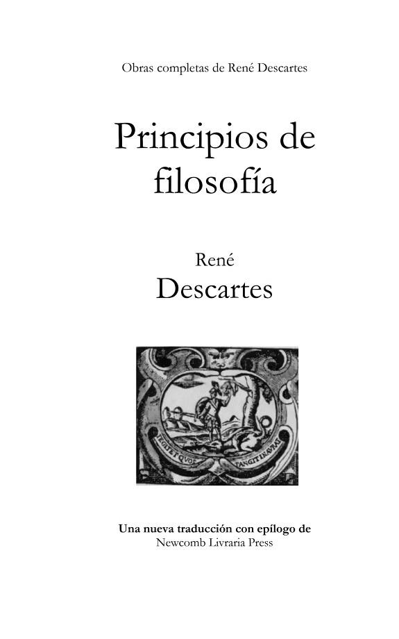 «Descartes es considerado con razón el padre de la filosofía moderna» – Schopenhauer Una nueva traducción de directamente del manuscrito original al inglés de la famosa obra de Descartes «Principios de filosofía» (título original en latín Principia philosophiae). Esta edición contiene una nueva introducción y un epílogo del traductor, así como una cronología de la vida de Descartes y resúmenes de cada una de sus obras. Descartes escribe aquí un amplio tratado sobre sus ideas filosóficas y científicas. Esta obra contribuyó a establecer los fundamentos matemáticos y mecanicistas de la física moderna y tuvo una importante repercusión en el desarrollo de la filosofía y la ciencia occidentales.