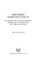 El libro recupera un gran desconocido de la España contemporánea: el exilio republicano en Argelia. Para dar a conocer la odisea de estos 15.000 exiliados, este estudio propone un viaje a través de las escrituras del yo de los que la vivieron en primera persona. En este recorrido, que abarca desde 1939, con el análisis de los diarios redactados en los campos de concentración en los que se vieron internados, hasta 2016, haciendo lo propio con las memorias de los -entonces- niños del exilio, se examinan las articulaciones identitarias de los autores en su llamamiento a que (les) recordemos (y) que «escriben, luego son».