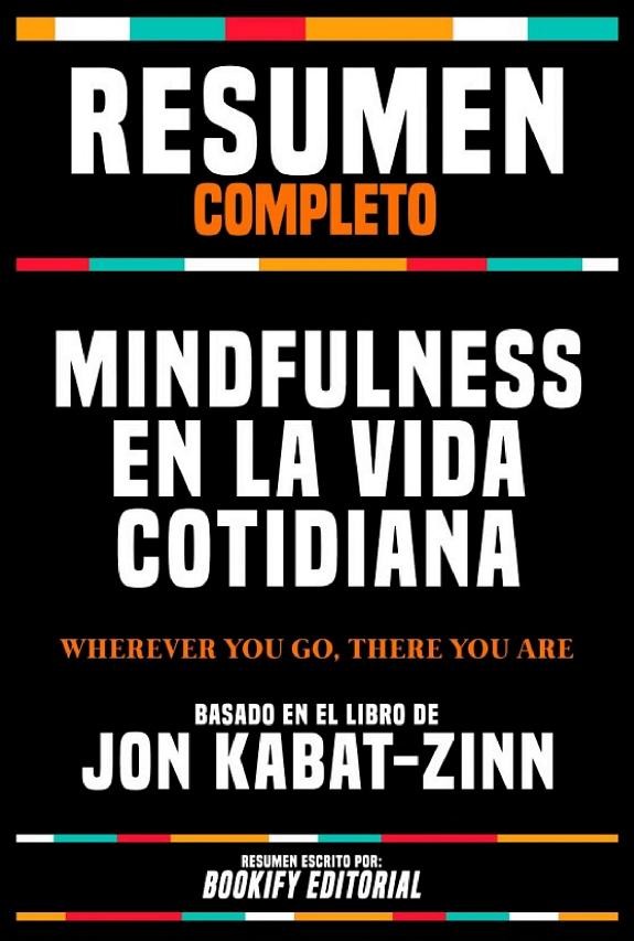 RESUMEN COMPLETO DE MINDFULNESS EN LA VIDA COTIDIANA (WHEREVER YOU GO, THERE YOU ARE) – BASADO EN EL LIBRO DE JON KABAT-ZINN RESUMEN ESCRITO POR: BOOKIFY EDITORIAL ¿Vives estresado y sin energía? ¿No sabes cómo salir de la vorágine del día a día? ¿Necesitas que tu mente descanse? Incorpora el hábito de la meditación mindfulness y tu vida cambiará. ACERCA DEL LIBRO ORIGINAL: El tema de la obra es la atención plena (o mindfulness), que es una forma de meditación que consiste en prestar atención al momento presente, consciente y deliberadamente y sin juzgar. Es este un concepto que en la actualidad ha trascendido sus orígenes espirituales budistas y que se fomenta dentro de todo tipo de organizaciones, desde empresas a centros educativos. En muchos sistemas de salud se lo sugiere como terapia para atender al estrés, la ansiedad o el dolor. ¿QUÉ APRENDERÁS? Lograrás relajarte y sentirte liberado de las presiones del pasado y del futuro. Valorarás en su justa medida los problemas, para los que encontrarás la solución más adecuada. Descubrirás en tu interior la energía que necesitas para asumir tus decisiones. Mejorará tu cuerpo, tu fisiología. Te sentirás mucho mejor y más feliz. ACERCA DE JON KABAT-ZINN, AUTOR DEL LIBRO ORIGINAL: Jon Kabat-Zinn es un médico y profesor estadounidense que ha desempeñado un rol importante en la Clínica para la Reducción del Estrés y en el Centro para la Atención Plena en la Universidad de Masachusetts. Sus investigaciones con el uso de disciplinas orientales lo han llevado a incluirlas en el tratamiento de personas afectadas por estrés. ACERCA DE BOOKIFY EDITORIAL, EL AUTOR DEL RESUMEN: LOS LIBROS SON MENTORES. Pueden guiar lo que hacemos en nuestras vidas y cómo lo hacemos. Muchos de nosotros amamos los libros mientras los leemos y hasta resuenan con nosotros algunas semanas después, pero luego de 2 años no podemos recordar si lo hemos leído o no. Y eso no está bien. Recordamos que, en el momento, aquel libro significó mucho para nosotros. ¿Por qué es que tiempo después nos hemos olvidado de todo? Este resumen toma las ideas más importantes del libro original. A muchas personas no les gusta leer, solo quieren saber qué es lo que el libro dice que deben hacer. Si confías en el autor no necesitas de los argumentos. La gran parte de los libros son argumentos de sus ideas, pero muy a menudo no necesitamos argumentos si confiamos en la fuente. Podemos entender la idea de inmediato. Toda esta información está en libro original. Este resumen hace el esfuerzo de reducir las redundancias y convertirlas en instrucciones directo al grano para las personas que no tienen intención de leer el libro en su totalidad. Esta es la misión de BOOKIFY EDITORIAL.