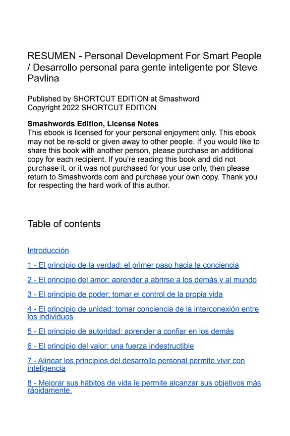 Al leer este resumen, aprenderá a definir la atención plena y a utilizarla. También aprenderá : cómo llegó el autor a trabajar en el tema del desarrollo personal; cuáles son los principios esenciales y secundarios de este campo; cómo armonizar y cumplir estos principios para alcanzar los objetivos propios; cómo aplicar ejercicios concretos para vivir conscientemente. Cuando acaba de cumplir 19 años, Steve Pavlina es detenido por robo. Durante su encarcelamiento, decide mejorar y no volver a cometer los mismos errores. Al ser liberado, volvió a la escuela para estudiar técnicas de gestión del tiempo. Tras su graduación, hizo del crecimiento personal su prioridad y, en 2004, creó su sitio web, stevepavlina.com, que rápidamente ganó popularidad en todo el mundo. «Desarrollo personal para gente inteligente» retoma los principales principios expuestos en su blog y da las claves para lograr una vida en plena conciencia.