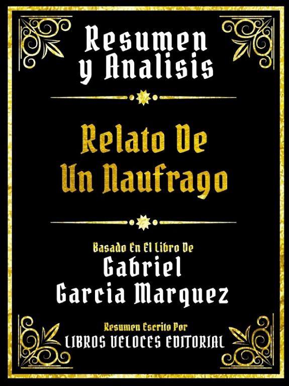 RESUMEN Y ANALISIS RELATO DE UN NAUFRAGO BASADO EN EL LIBRO DE GABRIEL GARCIA MARQUEZ RESUMEN ESCRITO POR: LIBROS VELOCES EDITORIAL CONTENIDO Resumen del libro (9 capítulos) Análisis del libro Biografía De Gabriel García Márquez ACERCA DEL LIBRO ORIGINAL Descubre la asombrosa historia de supervivencia en ‘Resumen de: Relato de un Náufrago’ de Gabriel García Márquez. Sumérgete en la narrativa emocionante de un náufrago solitario luchando contra las adversidades del implacable océano. Este resumen te llevará a través de los momentos de desesperación, la lucha por la supervivencia y la esperanza en medio de la soledad. Experimenta la fragilidad de la vida humana frente a la naturaleza en esta crónica intensa. Un relato apasionante que te mantendrá cautivado de principio a fin. Adquiere tu copia hoy y descubre la tenacidad del espíritu humano. ACERCA DEL AUTOR ORIGINAL Gabriel García Márquez (1927-2014), renombrado escritor colombiano y pionero del realismo mágico, dejó una huella indeleble en la literatura mundial. Nacido en Aracataca, su vida se entrelazó con su tierra natal, influyendo en obras maestras como «Cien años de soledad». Con una pluma única, García Márquez fusionó lo cotidiano con lo fantástico, explorando temas como el tiempo, el amor y la política. Ganador del Premio Nobel de Literatura en 1982, su legado trasciende géneros y fronteras, inspirando a generaciones con su estilo imaginativo y profundidad emocional. Su impacto perdura a través de sus obras y su visión inigualable del mundo.