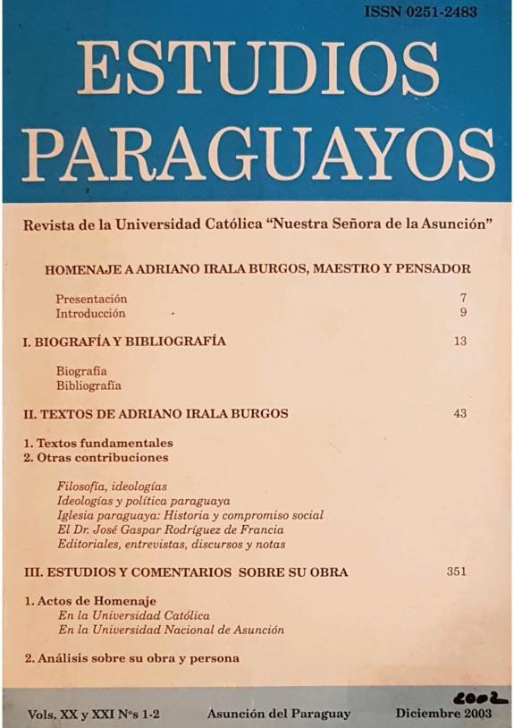 Revista Estudios Paraguayos 2002 y 2003 – N°1 y 2 Volumenes: XX y XXI