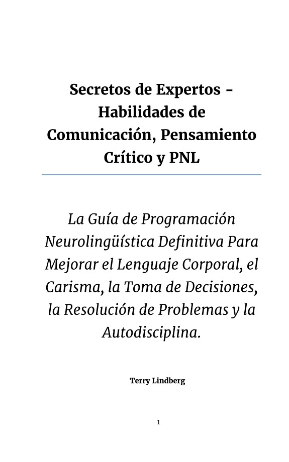 Secretos de Expertos – Habilidades de Comunicación, Pensamiento Crítico y PNL: La Guía de Programación Neurolingüística Definitiva Para Mejorar el Lenguaje Corporal, el Carisma, la Toma de Decisiones, la Resolución de Problemas y la Autodisciplina. Te gustaria: – ¿Tienes más carisma y brillas en situaciones sociales? – ¿Rockea al hablar en público y ser el centro de atención? – ¿Toma el control de sus pensamientos y resuelve problemas rápidamente? ¿Si? ¡Entonces esta guía definitiva para la comunicación y el pensamiento crítico es solo para usted! Poder tener una pequeña charla puede marcar una gran diferencia cuando se trata de la promoción que desea. La autoexpresión sana y la comunicación directa pueden salvar sus relaciones románticas. No hay un aspecto de la vida que no se pueda mejorar con mejores habilidades de comunicación. Lo mismo ocurre con el pensamiento crítico. ¿Se siente ansioso y estresado cuando se enfrenta a un problema? ¿Y si te dijéramos que puedes abordar los problemas de forma relajada? El truco está en saber pensar y analizar personas y problemas. Cuando aprenda estas estrategias a prueba de balas, podrá tomar decisiones informadas y resolver cualquier problema en su camino. Esto es lo que aprenderá en este libro de dominio de autoayuda 3 en 1: – Comunicación: desarrolle habilidades de comunicación magistrales en el lugar de trabajo, las relaciones personales y románticas, aprenda a mantener una conversación, comience una pequeña charla, mejore su comunicación escrita y conviértase en un maestro del lenguaje corporal – Pensamiento Crítico: aprenda las mejores estrategias para la resolución de problemas, descubra cómo leer y analizar a las personas, utilice los poderes de la inteligencia emocional para abordar los conflictos laborales y tome decisiones que beneficien su futuro – PNL: comprenda cómo funciona la programación neurolingüística, cómo mejorar su mentalidad y perspectiva de la vida a través del lenguaje, dominar la persuasión y las habilidades de manipulación, y finalmente comprender lo que los demás quieren decir cuando dicen lo que dicen Todo comienza con una mentalidad correcta. ¿Listo para tomar el camino correcto? ¡Desplácese hacia arriba, haga clic en «Comprar Ahora» y obtenga su copia!