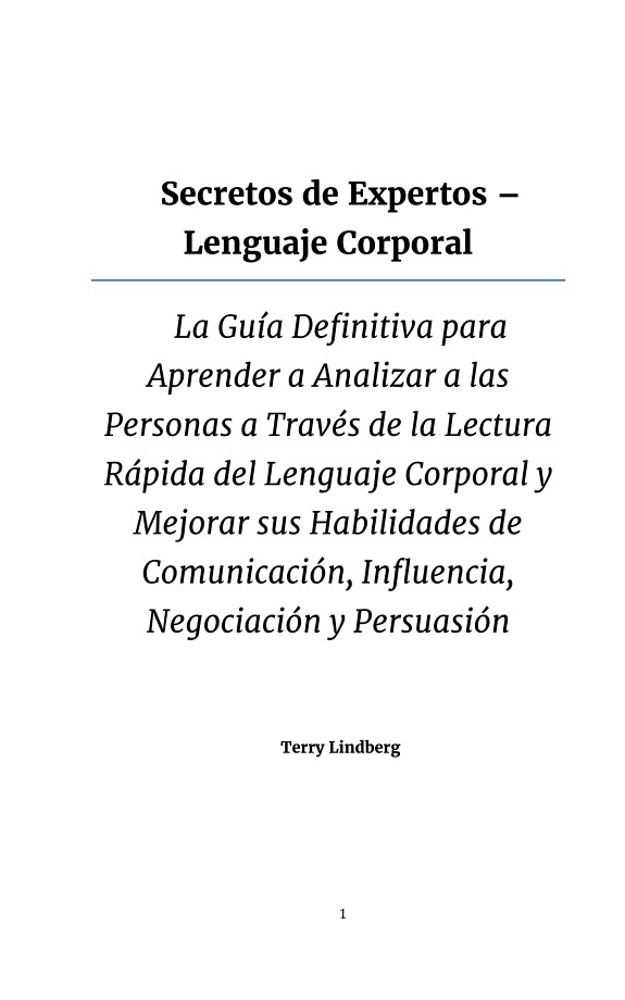 LENGUAJE CORPORAL: ¡Lea rápidamente a CUALQUIERA usando técnicas comprobadas de psicología conductual directamente del experto! ¿Tiene problemas para transmitir su confianza y experiencia en casi todos sus negocios? ¿Está siendo constantemente engañado y ahora está buscando formas de leer las verdaderas intenciones de las personas antes de confiar en ellas? Si respondió SÍ, ¡está en el lugar correcto! En su libro SECRETOS DE EXPERTOS: LENGUAJE CORPORAL, el galardonado psicólogo y autor Terry Lindberg le enseñará pasos prácticos para pulir su lenguaje corporal, así como analizar las señales físicas de otras personas, para mejorar su comunicación, influencia, negociación y habilidades de persuasión. En el transcurso de esta guía que cambiará su vida, usted: – Aprenderá rápidamente TODO lo que necesita saber sobre una persona a través de su lenguaje corporal – Identificará de manera experta los verdaderos sentimientos e intenciones de alguien utilizando solo señales faciales y corporales – Identificará con precisión quién es un amigo o enemigo descifrando mensajes físicos – Mejorará sus habilidades de negociación utilizando estrategias comprobadas de lenguaje corporal SECRETOS DE EXPERTOS: LENGUAJE CORPORAL es la guía ÚLTIMA guía para aprender a analizar de manera experta a las personas a través del lenguaje corporal de lectura rápida, así como mejorar sus habilidades de comunicación, influencia, negociación y persuasión. En esta guía, aprenderá estrategias simples del mundo real que lo ayudarán a obtener el resultado que desea, sin importar la situación o el nivel en el que se encuentre. ¡Si recibe este libro hoy, está GARANTIZADO de salir con al menos una cosa PODEROSA que puede usar para mejorar sus habilidades de comunicación verbal y no verbal de por vida! ¿Entonces, qué espera? Desplácese hacia arriba, ¡haga clic en «Comprar Ahora» y obtenga su propia copia hoy!