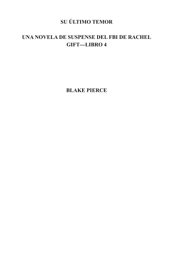Víctimas jóvenes y sanas aparecen muertas en el desierto de Nuevo México, sus cuerpos expuestos de manera dramática. Rachel debe correr contra el tiempo para dar caza al asesino, aunque eso signifique complacer sus retorcidas fantasías. La agente especial del FBI Rachel Gift es una de las agentes más brillantes del FBI en la caza de asesinos en serie. Planea hacer esto para siempre, hasta que descubre que le quedan meses de vida. Decidida a caer luchando y a mantener en secreto su diagnóstico, Rachel se enfrenta a su propia mortalidad mientras intenta salvar las vidas de otros. Pero, ¿cuánto tiempo podrá aguantar antes de derrumbarse bajo el peso de todo? —UNA OBRA MAESTRA DEL THRILLER Y EL MISTERIO. Blake Pierce hizo un trabajo magnífico desarrollando personajes con un lado psicológico tan bien descrito que nos sentimos dentro de sus mentes, seguimos sus miedos y celebramos sus éxitos. Lleno de giros, este libro te mantendrá despierto hasta la última página. —Books and Movie Reviews, Roberto Mattos (sobre Una vez desaparecido) SU ÚLTIMO TEMOR (Un thriller de suspense de Rachel Gift del FBI) es el libro #4 de una nueva serie largamente esperada del autor superventas nº 1 y superventas de USA Today Blake Pierce, cuyo éxito Una vez desaparecido (una descarga gratuita) ha recibido más de 1.000 reseñas de cinco estrellas. La agente del FBI Rachel Gift, de 33 años, sin igual por su capacidad para entrar en la mente de los asesinos en serie, es una estrella en ascenso en la Unidad de Crímenes Conductuales, hasta que una visita rutinaria al médico revela que le quedan pocos meses de vida. No queriendo cargar a los demás con su dolor, Rachel decide, por muy angustioso que sea, no contárselo a nadie, ni siquiera a su jefe, su compañero, su marido o su hija de siete años. Quiere caer luchando y llevarse consigo a tantos asesinos en serie como pueda. Cuando se entera de una serie de extraños asesinatos en Nuevo México, Rachel se da cuenta rápidamente de que no se trata de un asesino corriente. En una carrera contra el tiempo, Rachel debe averiguar quién está atrayendo a estas víctimas al desierto y por qué. Mientras tanto, su propio reloj se agota. ¿Podrá resolver este macabro rompecabezas y detener al asesino de una vez por todas? Un thriller criminal fascinante y escalofriante protagonizado por una brillante y tambaleante agente del FBI, la serie RACHEL GIFT es un misterio imposible de soltar, lleno de suspense, giros y secretos impactantes, impulsado por un ritmo trepidante que te mantendrá con los ojos abiertos hasta altas horas de la noche. Los libros #5 y #6 de la serie —SU ÚLTIMA ELECCIÓN y SU ÚLTIMO ALIENTO— ¡ya están disponibles!