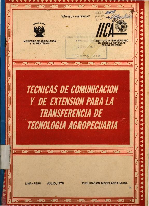 La comunicacion escrita en divulgaciones agricolas. Radiodifusion rural. Comunicacion audiovisual. Lo basico en fotografia. Produzca sus propias vistas fijas. Extension Agricola su disyuntiva historica.