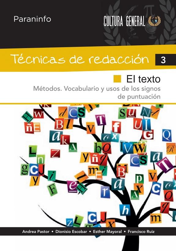 TÉCNICAS DE REDACCIÓN es una colección de seis cuadernos. En ellos se desarrollan contenidos, procedimientos, acciones y métodos para redactar un escrito. Se parte de los conceptos básicos de la composición escrita y del vocabulario ortográfico. Se avanza paso a paso, de forma directa, secuenciada y graduada, sin dejar lagunas intermedias. Se facilita la enseñanza global y la individualizada. Esta colección es útil para aprender, reforzar, recordar, ampliar y enriquecer las capacidades expresivas. Se recomienda para todos los públicos, de cualquier nivel educativo, de la primaria a la universidad, independientemente de la edad y de la situación profesional.;En este Cuaderno de técnicas de redacción 3. El texto. Métodos. Vocabulario y usos de los signos de puntuación se exponen y se practican diferentes métodos para redactar un escrito.;Además del resumen previo, el guion y el borrador, se incluyen las técnicas de redacción de preguntas múltiples, de preguntas más frecuentes o FAQ, de frases sueltas, de brain storming o tormenta de ideas, de diagramas o palabras sueltas y la redacción directa. Todo ello se trabaja junto a un vocabulario ortográfico actualizado, según las nuevas normas de Ortografía del idioma español. Se incluyen resúmenes y actividades para resolver en el cuaderno o en otro soporte. Es autosuficiente y compatible con cualquier libro de texto o material educativo.