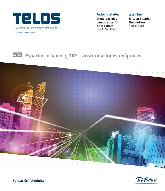 El Dossier central del volumen 93 de Telos está dedicado a “Espacios urbanos y TIC: transformaciones recíprocas”, y su coordinación ha sido realizada por Néstor García Canclini (UAM de México), antropólogo argentinomexicano de amplia repercusión en los estudios sobre la cultura. En su call for papers se explicitaba la demanda necesaria de un acercamiento interdisciplinar en el seno de las ciencias sociales, desde la comunicación o los estudios culturales hasta la sociología o la antropología, para entender los profundos cambios contemporáneos del espacio urbano. En suma, el presente número de Telos demuestra que arte y cultura, tecnologías de la información y cambios sociales, protagonizados en muchos casos por las jóvenes generaciones, se entrelazan de múltiples formas para mostrar un mundo en cambio permanente, sobre el que, a pesar y por encima de la actual crisis financiera y de sus deprimentes consecuencias, cabe fundamentar ilusiones y esperanzas de un mundo mejor.