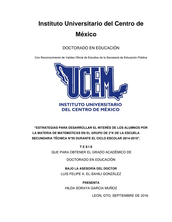“ESTRATEGIAS PARA DESARROLLAR EL INTERÉS DE LOS ALUMNOS POR LA MATERIA DE MATEMÁTICAS EN EL GRUPO DE 2°K DE LA ESCUELA SECUNDARIA TÉCNICA N°55 DURANTE EL CICLO ESCOLAR 2014-2015”.