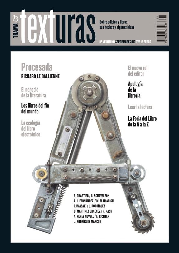 Índice 01_Procesada Filosofía de las «ediciones limitadas» Richard Le Gallienne 02_Bastarda Leer la lectura Roger Chartier Maneras de leer o las alfabetizaciones múltiples Joaquín Rodríguez Los libros del fin del mundo Fernando Iwasaki El nuevo rol del editor, y el futuro del libro y la industria editorial Guillermo Schavelzon Apología del libro y de la librería Miquel Flamarich El negocio de la literatura Richard Nash 03_Corrida La Feria del Libro de Madrid de la A a la Z Javier Rodríguez Marcos 04_Pelada Toma nota. Apuntes para emprender en el mundo editorial Ángel L. Fernández Recuero Cuando todo cambia, la única referencia es el propio cambio Albert Pérez Novell La ecología del libro electrónico Omegar Martínez Jiménez Crecimiento y desarrollo de las librerías Enrique Richter 05_Chupada Libros