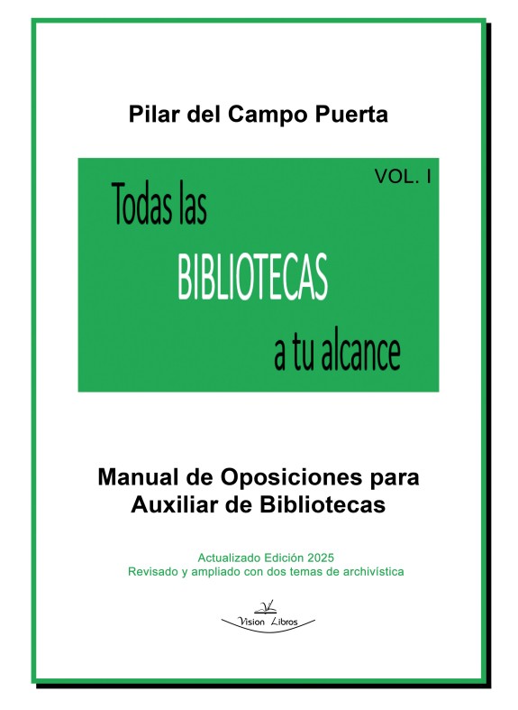 TODAS LAS BIBLIOTECAS A TU ALCANCE es un Manual de Oposiciones para Auxiliar de Bibliotecas. En base a todo lo que ya se conoce sobre esta cuestión, la presente obra pretende ayudar a los estudiantes, añadiendo la máxima información posible de manera textual y visual, fomentando la hipertextualidad, para que la consulta a los contenidos sea rápida, directa, en cualquier momento y desde cualquier lugar…