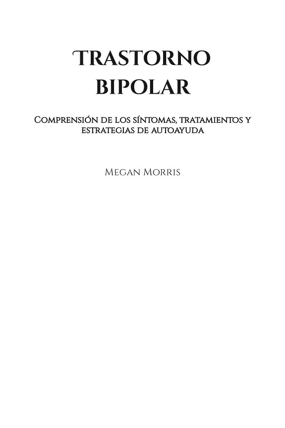 Trastorno bipolar Desvele los misterios del trastorno bipolar con esta guía definitiva, que ofrece una exploración exhaustiva de esta afección a menudo incomprendida. Este recurso esencial profundiza en las complejidades del Trastorno Bipolar, proporcionando claridad y comprensión para cualquier persona afectada o interesada en aprender más sobre él. En su interior, descubrirá los síntomas del Trastorno Bipolar en las diferentes etapas de la vida y explorará las opciones de tratamiento más eficaces y las estrategias de autoayuda disponibles en la actualidad. Ya sea que esté tratando su propia enfermedad, apoyando a un ser querido o sea un profesional de la salud en busca de información actualizada, esta guía lo equipa con el conocimiento necesario para enfrentar los desafíos únicos asociados con el trastorno bipolar. Más allá de la educación, este libro dota a los lectores de herramientas para el crecimiento personal y la recuperación. Aprenda a reconocer los cambios de humor y de comportamiento, comprenda el papel fundamental de los sistemas de apoyo e incorpore ajustes en el estilo de vida que pueden mejorar significativamente la vida diaria y los resultados a largo plazo. Adquiera los conocimientos, las estrategias y la compasión necesarios para transformar los retos en oportunidades de resiliencia y crecimiento. Esta guía es un recurso valioso para aportar claridad y esperanza al tratamiento del trastorno bipolar. Comience hoy mismo su viaje hacia una vida equilibrada y plena.