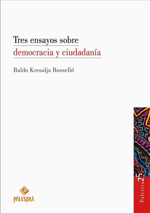 Los tres ensayos que se recogen en el presente libro serían, de por sí, interesantes trabajos para entender algunas cuestiones conceptuales relacionadas a la democracia, la representación y la ciudadanía. Con ello, ya sería suficiente para que estos textos despertasen el interés. Si a eso le sumamos el contexto particular de nuestro país, relacionado a la inestabilidad política, la crisis de representación, y los movimientos ciudadanos que se han dado en algunos momentos clave, esta obra cobra una nueva dimensión que nos permitirá relacionar la teoría con la realidad, y con ello tener mejores elementos de juicio y, por qué no, una oportunidad para pensar en la ciudadanía desde una perspectiva distinta. BALDO KRESALJA ROSSELLÓ Abogado por la Pontificia Universidad Católica del Perú y Magíster en Administración de Negocios (ESAN). Profesor Principal de la Facultad de Derecho de la PUCP. Director del Anuario Andino de Derechos Intelectuales. Ha publicado artículos y libros jurídicos en las áreas de los derechos intelectuales y el derecho constitucional. Ex Ministro de Justicia. Miembro de Número de la Academia Peruana de Derecho. Socio de Duany & Kresalja Abogados. Miembro de APPI, ASIPI, INTA, FICPI, AIPPI.